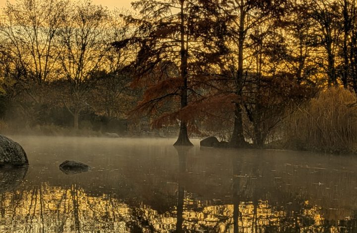 Der Herbst atmet heute. Nicht laut, nicht dramatisch, eher dieses tiefe, gleichmäßige Atmen von jemandem, der schon viel erlebt hat und weiß, dass man für die nächsten Wochen Kraft braucht. Innen und außen dunkel. Ich merke, wie sich mein eigener Rhythmus daran anpasst – langsamer, weicher, ein bisschen nach innen gekehrt.