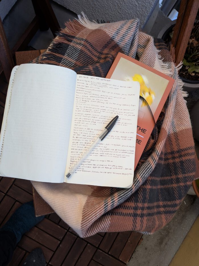 Und dann sitzt man auf dem eigenen Balkon. Zu Hause, was auch immer das gerade bedeutet. Die Tasse ist leer. Die Seite ist umgeblättert. Das Licht wandert über die Giebel und verabschiedet sich leise. Und man spürt dieses Gefühl, das sich mit keinem Wort fassen lässt, aber das jeder kennt, der einmal eine Zeile gelesen hat, die genau im richtigen Moment kam.